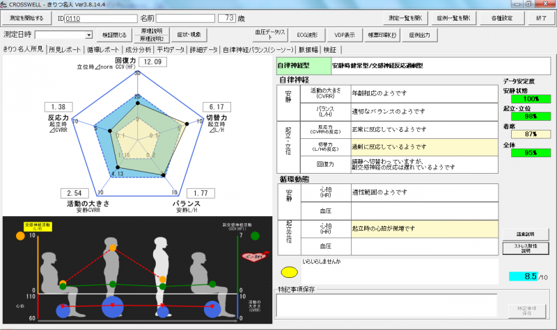 10歳の子供(健常)をきりつ名人で測定 きりつ名人所見
